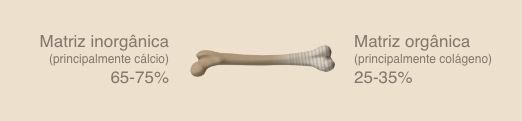 O tecido ósseo é formado por matriz orgânica e inorgânica, sendo a parte orgânica constituída principalmente por fibras de colágeno, que compõem de 25 a 35% de toda a estrutura.