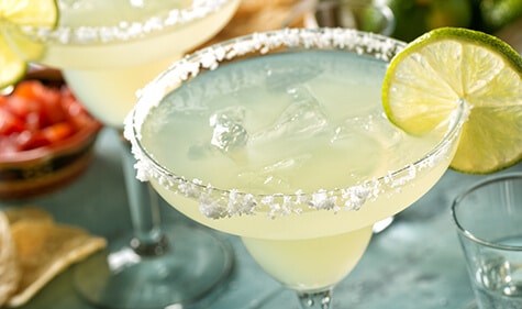 - Para decorar o copo, passe uma rodela do limão ao redor e grude o sal por toda a boca do copo.